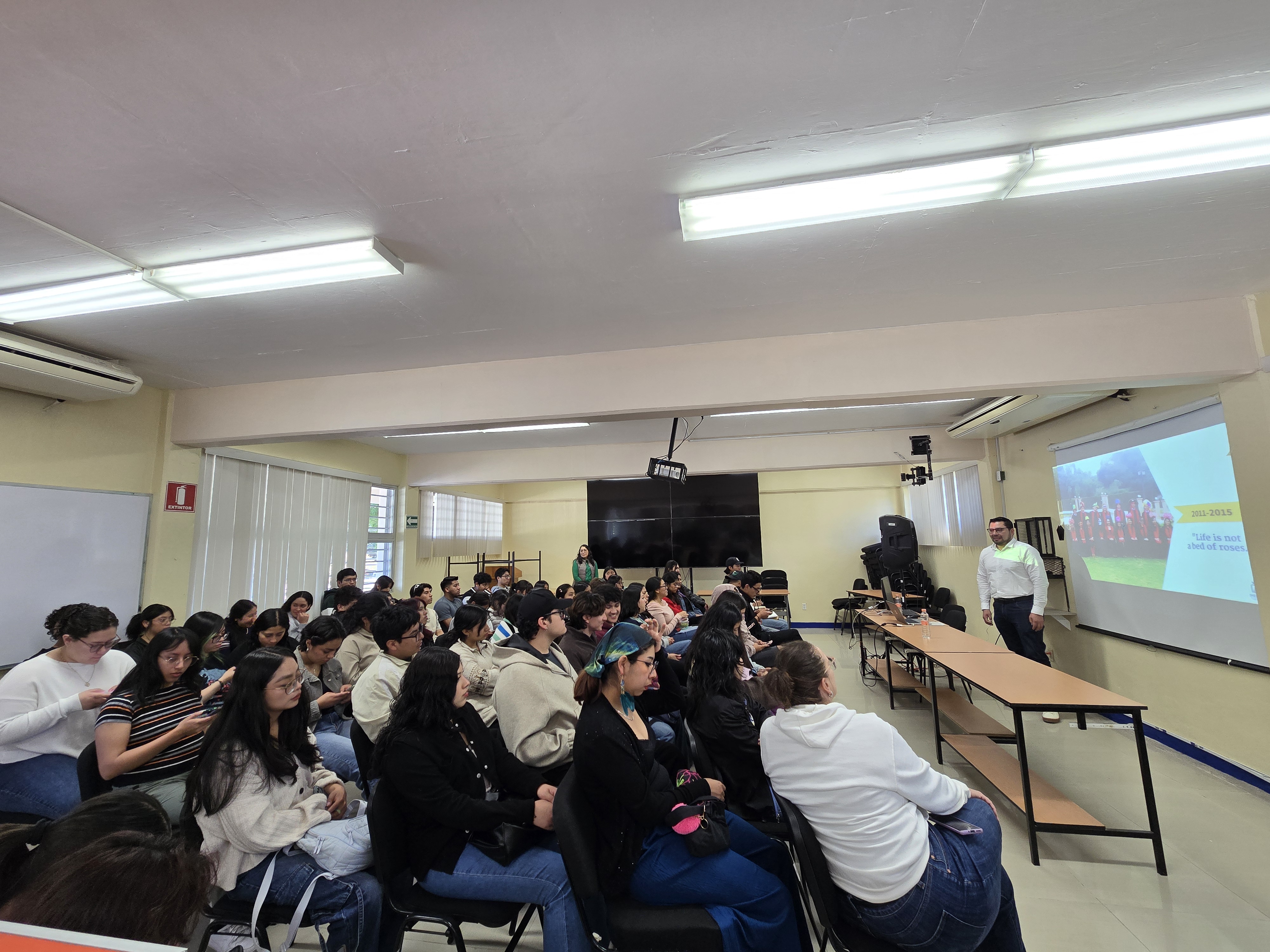 La ponencia “USICAMM y el ingreso al servicio público docente: marco normativo, procesos y retos actuales”, impartida por el Dr. Rubisel Hernández Muñoz, tuvo como propósito analizar el funcionamiento del sistema que regula el acceso a la profesión docente en el sector público en México, dirigida a los alumnos interesados en conocer los mecanismos de ingreso al servicio educativo. Este espacio académico abordó el marco legal que sustenta a la USICAMM, así como los procesos de admisión, promoción y reconocimiento establecidos para garantizar que el personal docente cuente con los conocimientos y capacidades idóneas para el servicio educativo.