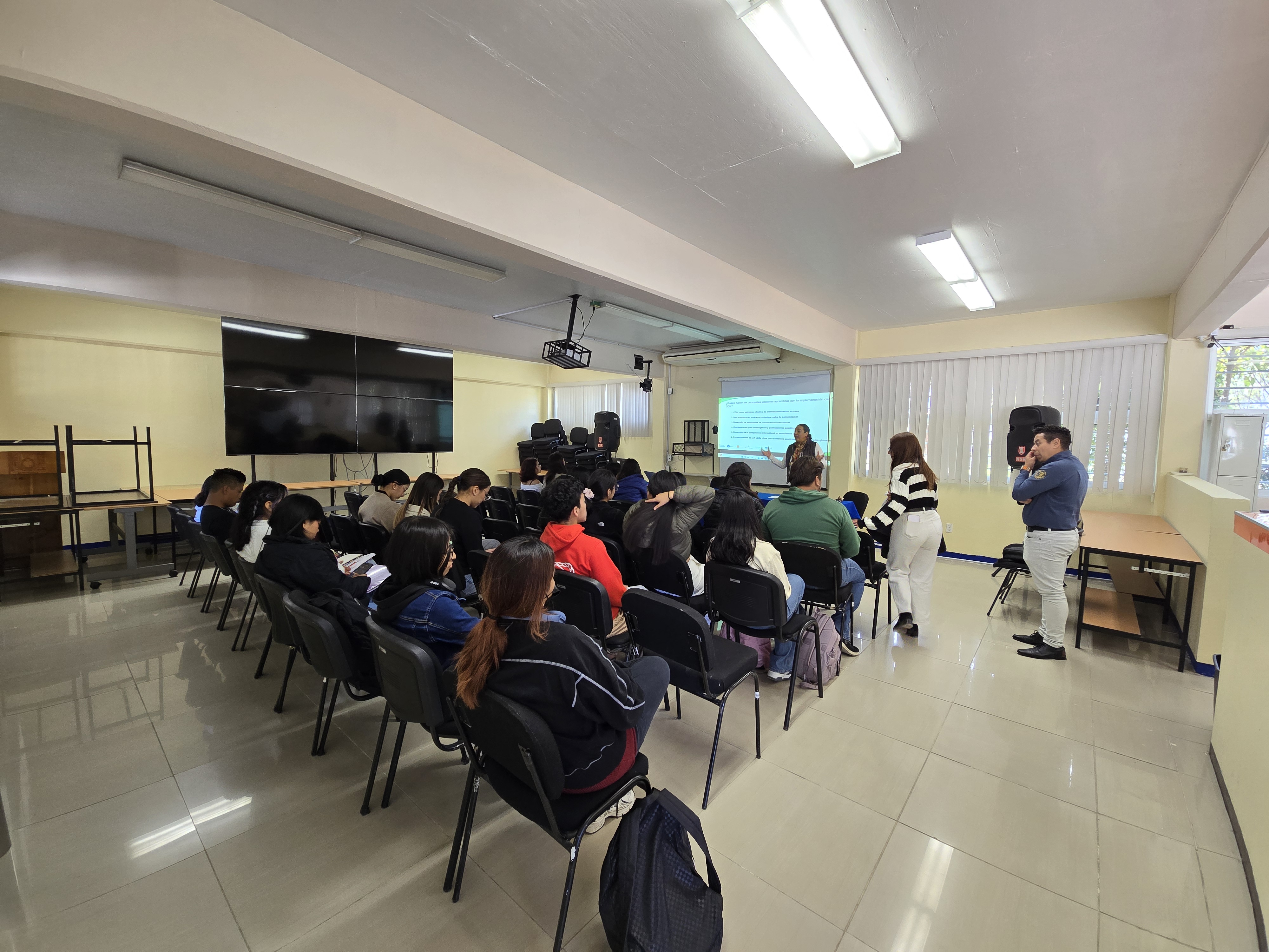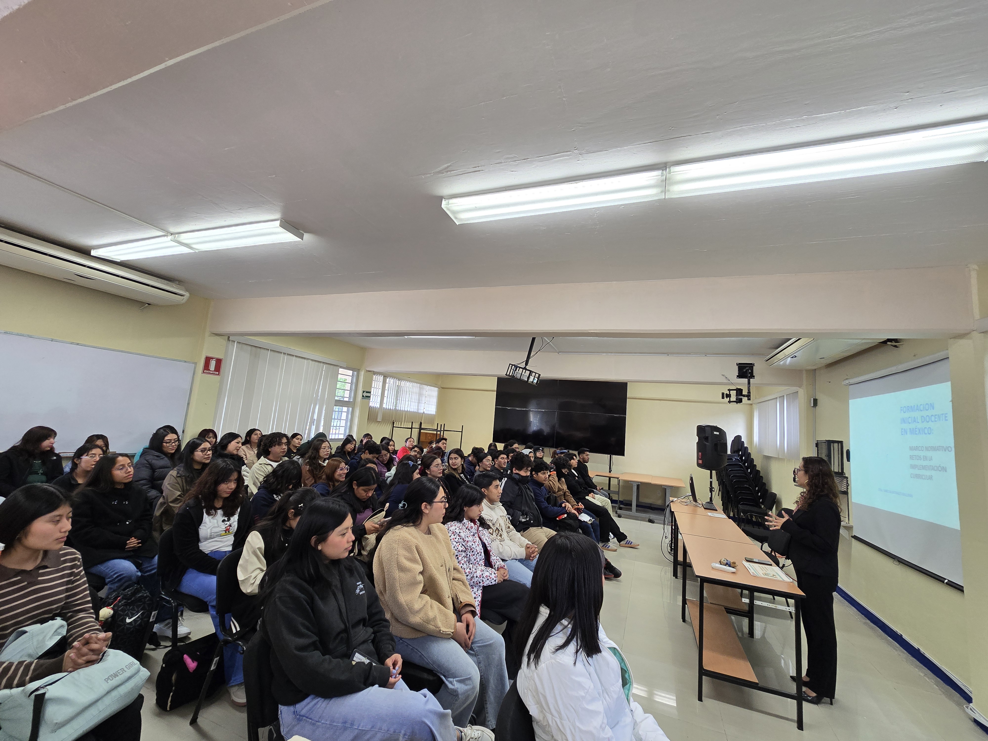 Durante su participación, la ponente abordó los principales fundamentos normativos que orientan la formación docente en el país, así como los desafíos actuales en la implementación de los planes y programas de estudio. En este sentido, destacó la importancia de fortalecer los procesos formativos de los futuros docentes, considerando las demandas del contexto educativo contemporáneo.