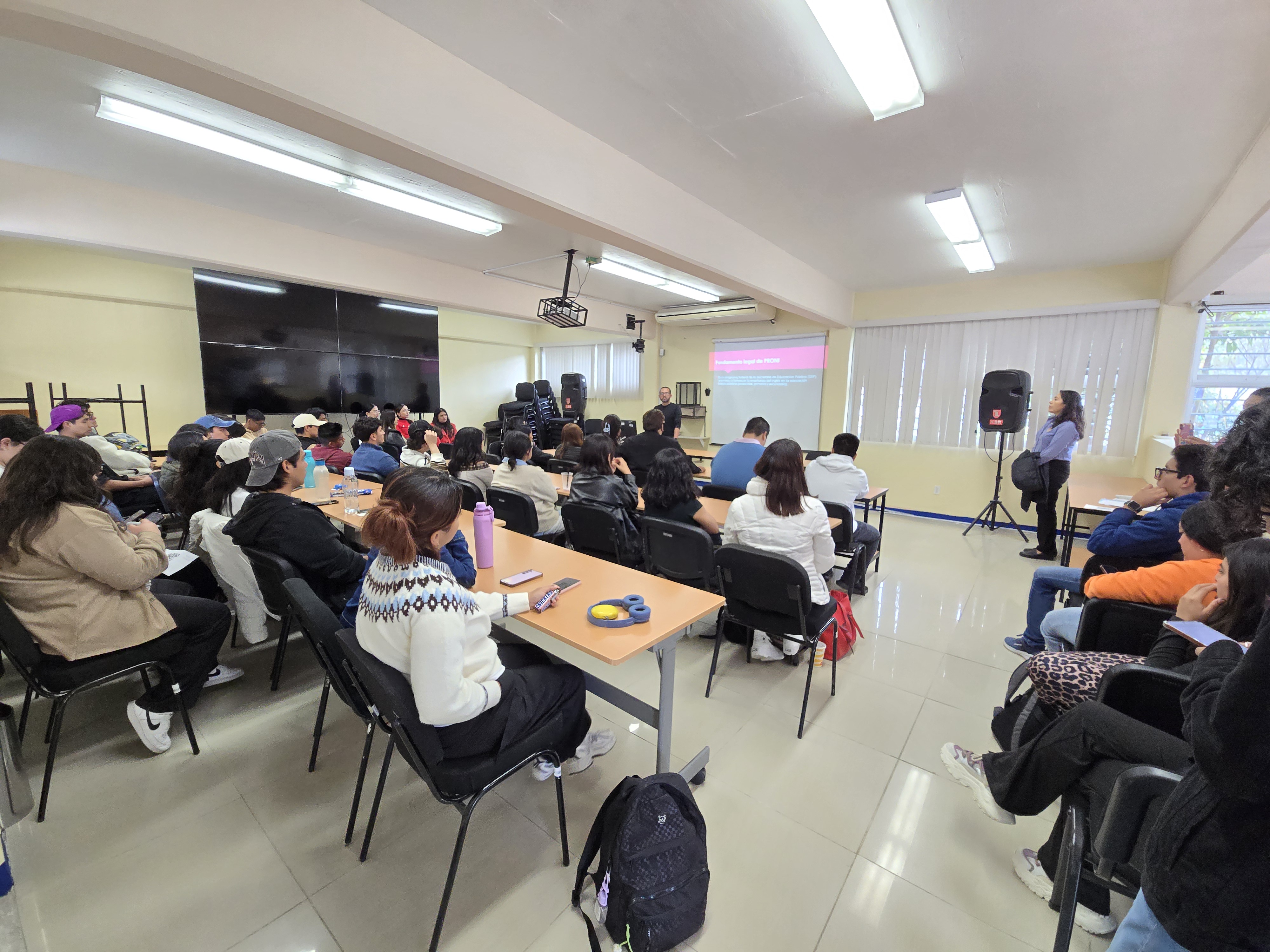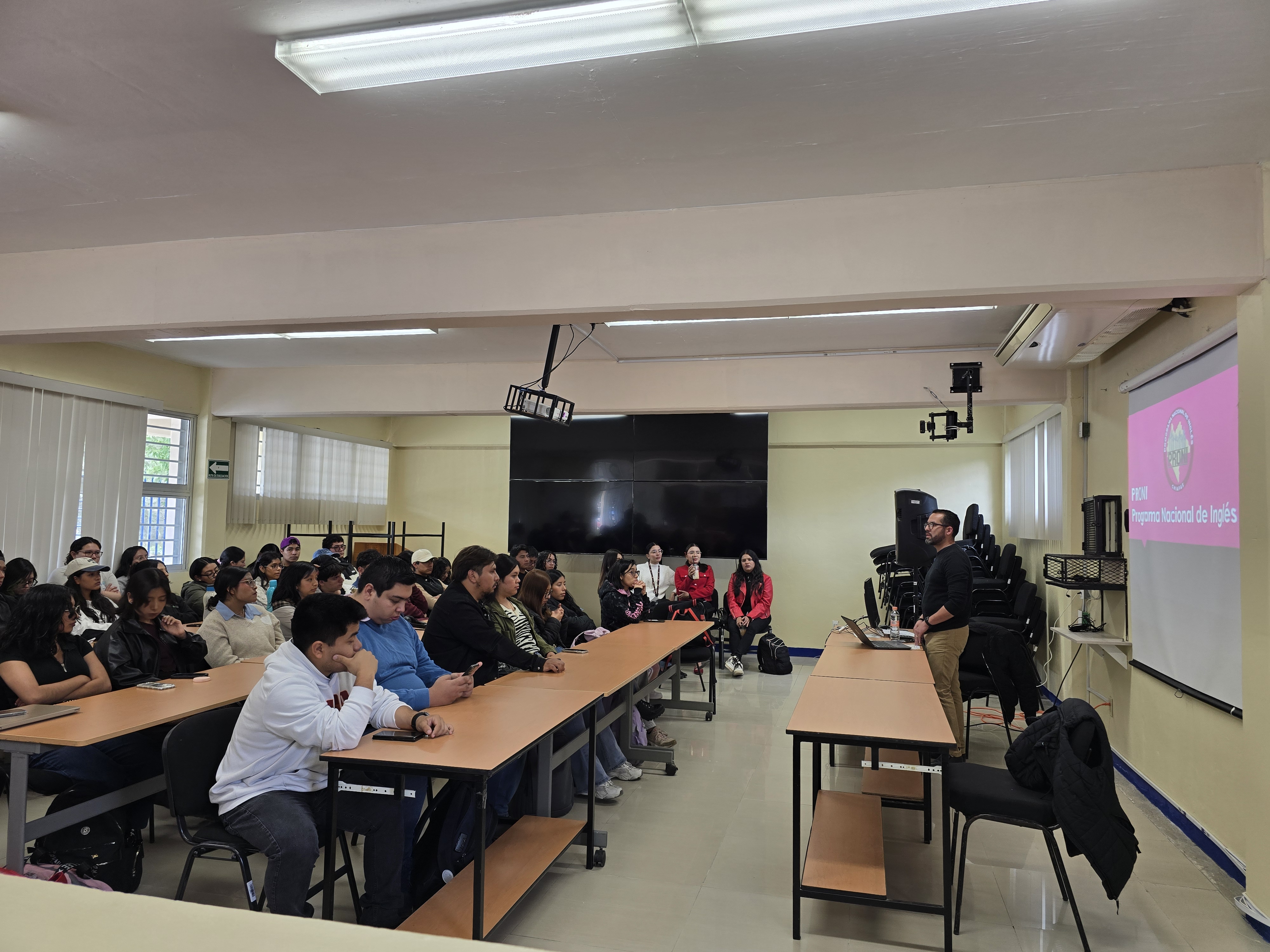 El 13 de marzo de 2026 se llevó a cabo el evento “El Programa Nacional de Inglés (PRONI): marco normativo, operación y desafíos en el contexto estatal”, cuyo propósito fue analizar los lineamientos que regulan este programa, así como su funcionamiento y los principales retos que enfrenta en su implementación a nivel estatal. Durante la actividad se abordaron aspectos relacionados con la organización, gestión y fortalecimiento de la enseñanza del idioma inglés en el sistema educativo. La ponencia estuvo a cargo del Lic. Juan Manuel Cruz Trujillo, asesor educativo especializado en PRONI, quien compartió su experiencia y perspectiva sobre la aplicación del programa, destacando los desafíos y oportunidades para su consolidación en el ámbito estatal.
