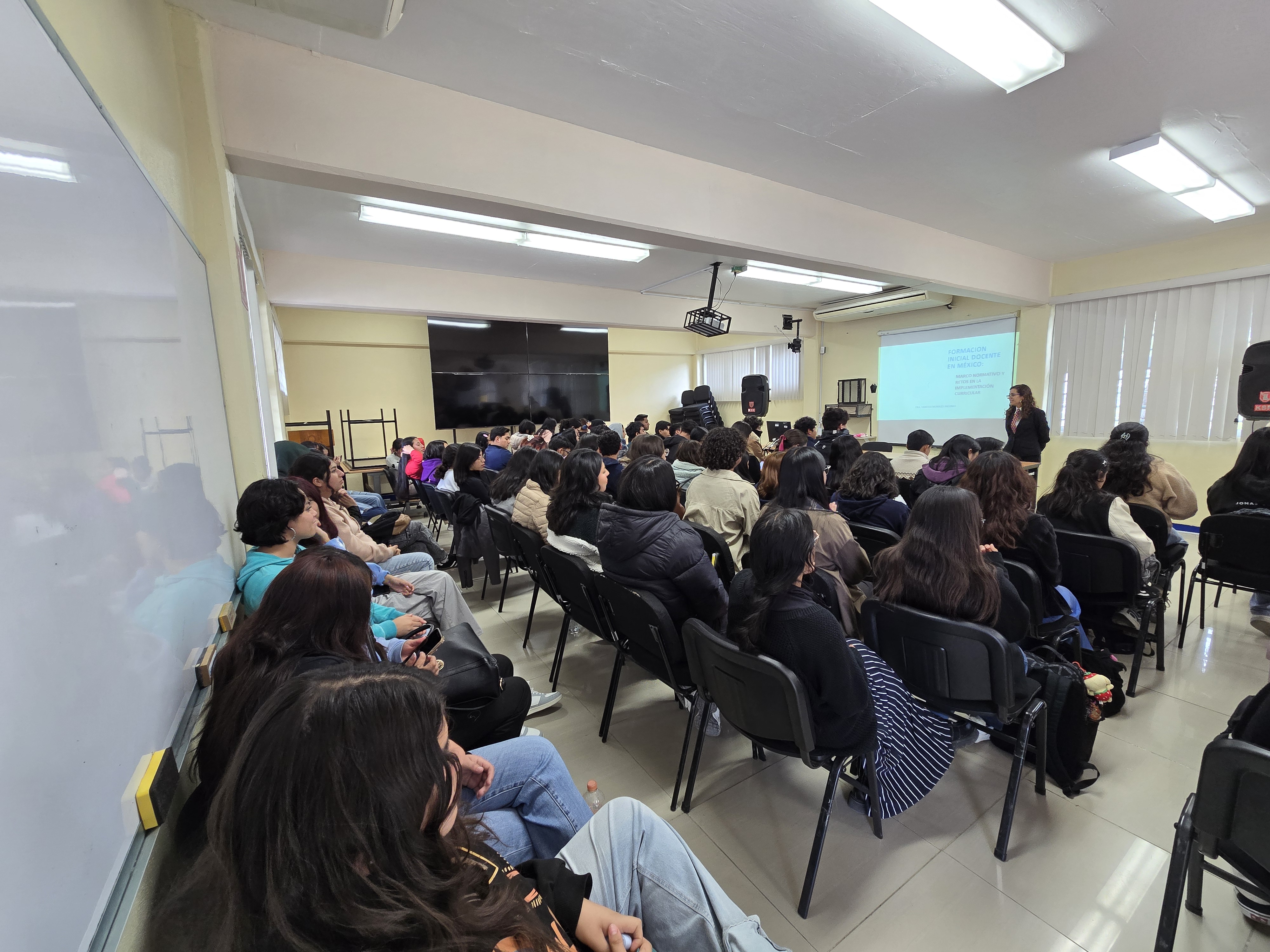 Durante su participación, la ponente abordó los principales fundamentos normativos que orientan la formación docente en el país, así como los desafíos actuales en la implementación de los planes y programas de estudio. En este sentido, destacó la importancia de fortalecer los procesos formativos de los futuros docentes, considerando las demandas del contexto educativo contemporáneo.